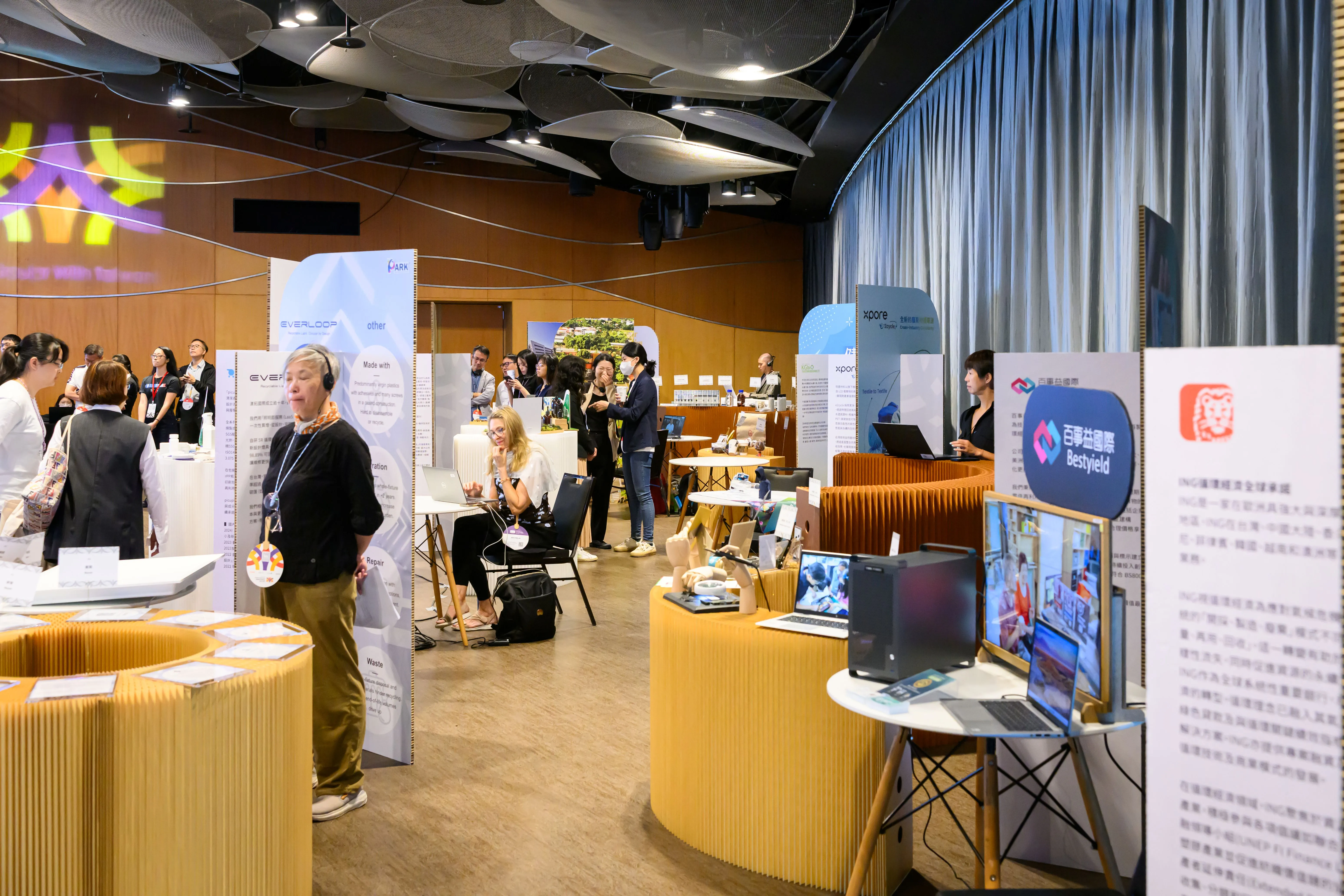- 再生設計|會場指引以電子紙取代輸出板、展架模組可重複使用、現場裝置由回收物料製成。